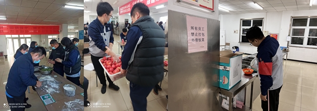 有研国晶辉团支部不定期给职工分发新鲜水果和蔬菜,并联合条保部开展“包饺子,吃饺子”活动,同时成立青年“后勤小分队”,提供全方位服务保障,不断丰富驻厂职工生活、饮食多样性,保障职工身体健康,使驻厂职工感受到家的温暖。