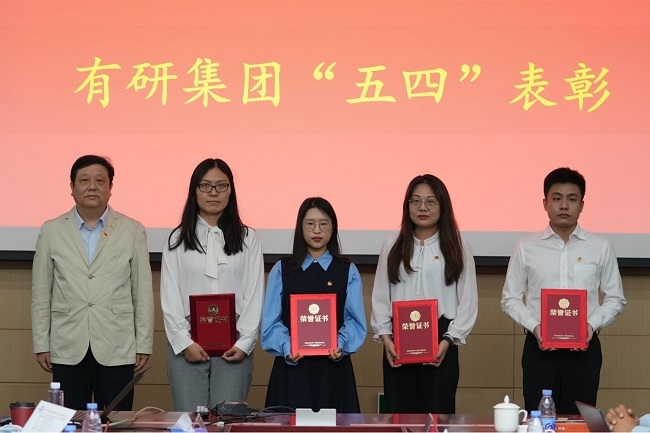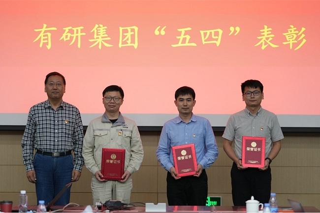 曹泊宇宣读有研集团“五四”表彰决定,授予山东有研半导体硅片制造部等2个集体“青年文明号”称号,授予有研国晶辉团支部等2个团组织“五四红旗团支部”称号,授予国联研究院任志敏等6名同志“青年岗位能手”称号,授予有研粉材杨铭等4名同志“优秀共青团干部”称号,授予有研兴友王婧等10名同志“优秀共青团员”称号,集团领导现场向获奖代表颁奖。