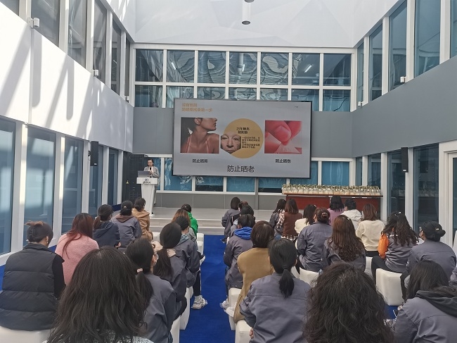 有研亿金工会组织主题为“点亮肌肤 闪亮职场”的妇女节活动。让女员工从防晒、护肤、抗衰三个方面深入解锁肌肤健康问题。