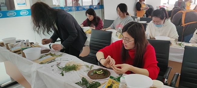 活动现场,女同胞们在老师的讲解指导下,认真挑选、充分想象、精巧构思,完全沉浸在拓印创作中。她们根据植物形貌、样式不同,精心组织、搭配、构图、拓印、浇筑,用灵巧的双手,将植物最美瞬间保留在柔软的陶泥之中,制作出一幅幅化石一般、创意十足的拓印作品,展现出积极乐观、热爱生活的精神面貌。