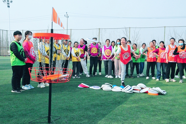 本次活动得到了广大女员工的热情响应。运动场上,国合通测和国标检验的女员工们认真学习飞盘的有关知识,在教练指导下,参加活动的女员工们分为4队展开积分赛,通过飞盘九宫格、飞盘高尔夫、飞盘桶三项飞盘小游戏,大家逐步熟悉飞盘的抛接。最后,进入极限飞盘比赛,经过精彩的角逐,绿队获得冠军,领取了印有“CUTC”的专属飞盘。活动最后的总结阶段,大家互相交流,分享活动感受,气氛热烈、其乐融融。