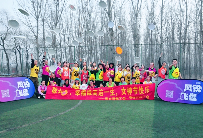 为热烈庆祝国际三八妇女节,丰富员工文化生活,3月7日下午,国合通测工会联合国标检验工会在怀柔组织开展了别开生面的主题飞盘活动。