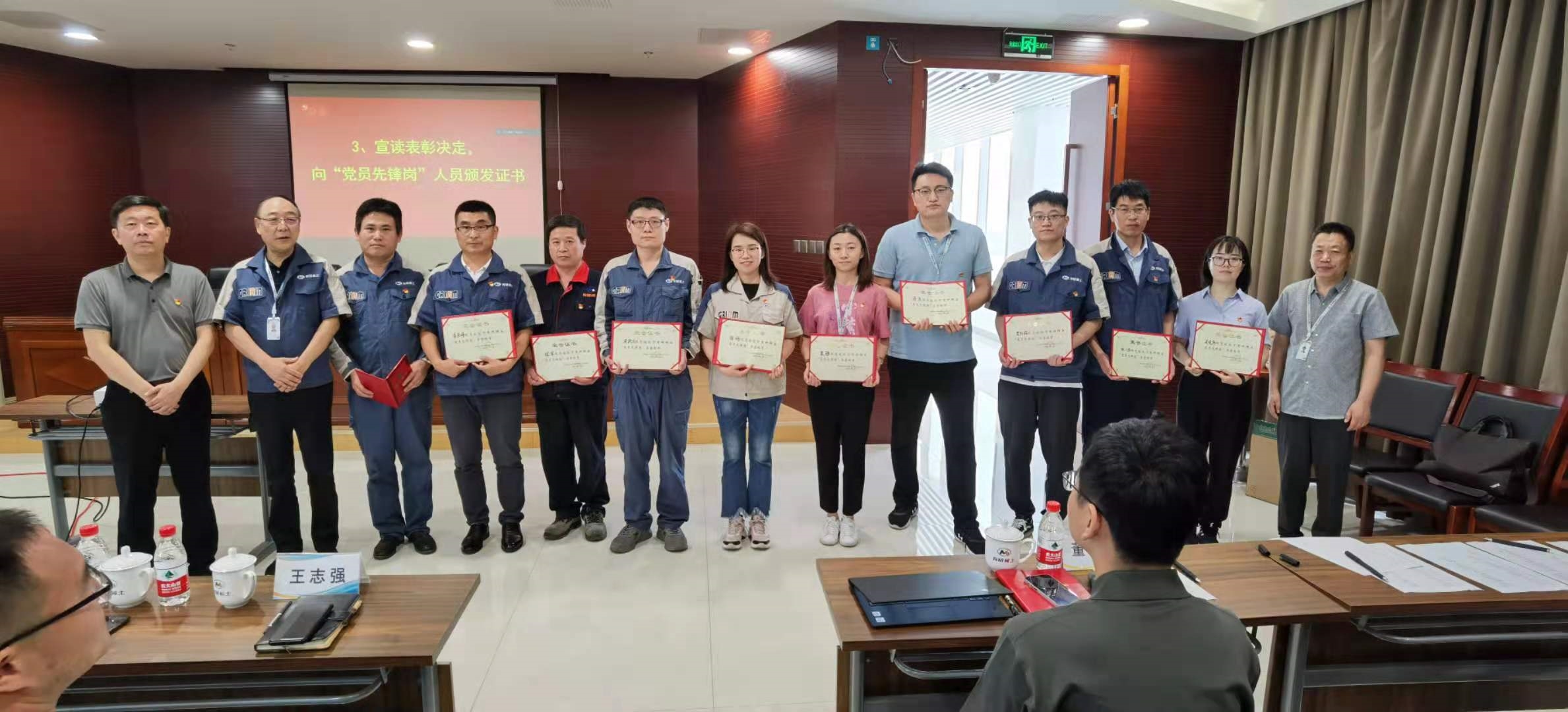 大会第三项,为弘扬正气、表彰先进、树立标杆,经各部门、子公司推荐,有研稀土党总支委员会综合评定,有研稀土党总支决定授予十六名党员同志“党员先锋岗”称号。党总支青年委员刘荣辉宣读了表彰名单,刘慧舟书记、李红卫教授和李宗安副总经理一起向受表彰同志颁发“党员先锋岗”荣誉证书。