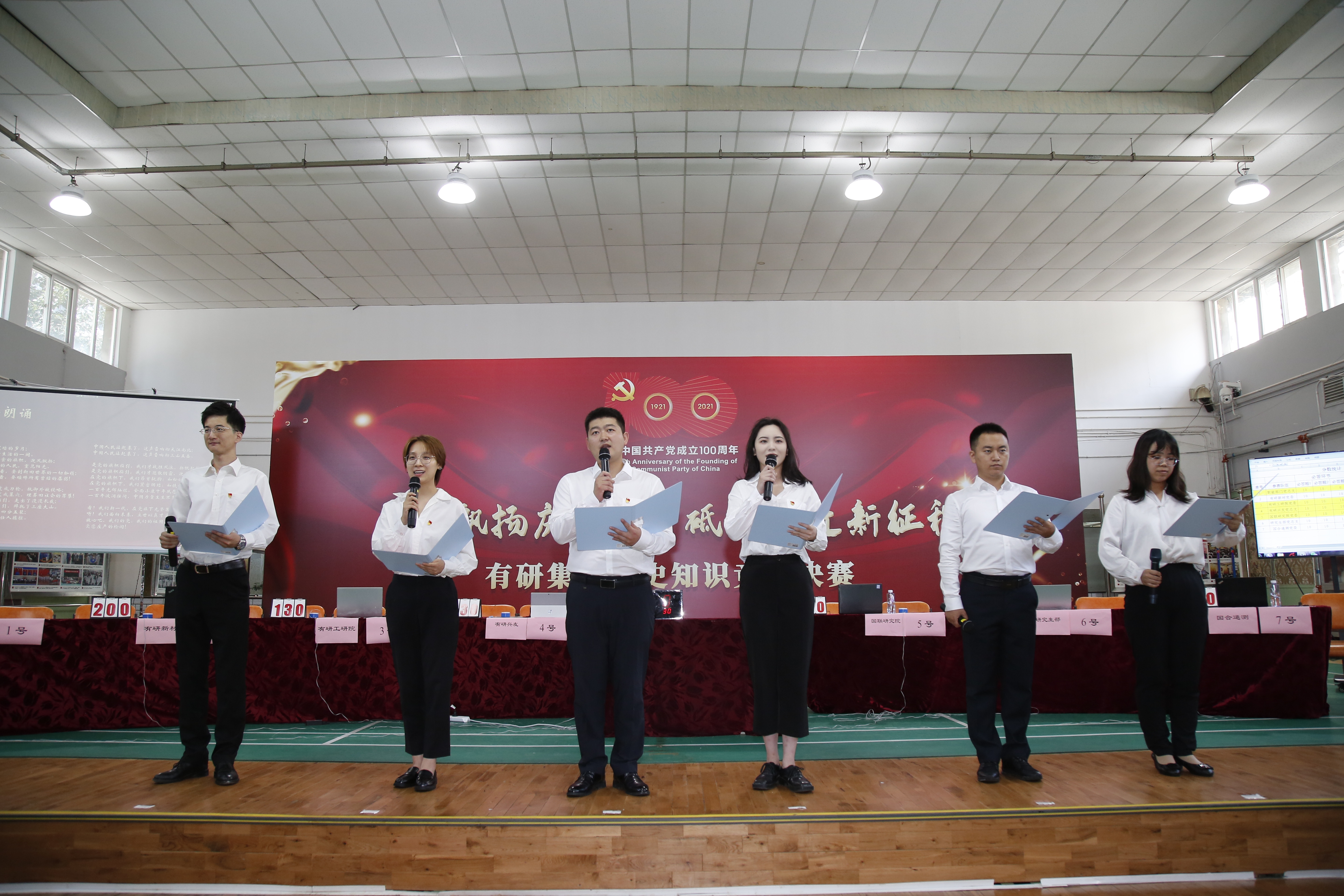 为深入学习贯彻习近平总书记“七一”重要讲话精神,扎实开展党史学习教育,进一步引导广大党员干部群众坚定理想信念,永葆奋斗热情,有研集团举办“党旗飘扬庆华诞,砥砺奋进新征程”党史知识竞赛。7月23日,决赛如期而至。有研集团副总经理、党史学习教育领导小组副组长黄倬,总经理助理刘创社出席决赛。职能部门相关负责人,各二级党组织书记、副书记,受邀担任评委嘉宾,150余名员工代表到场助威。