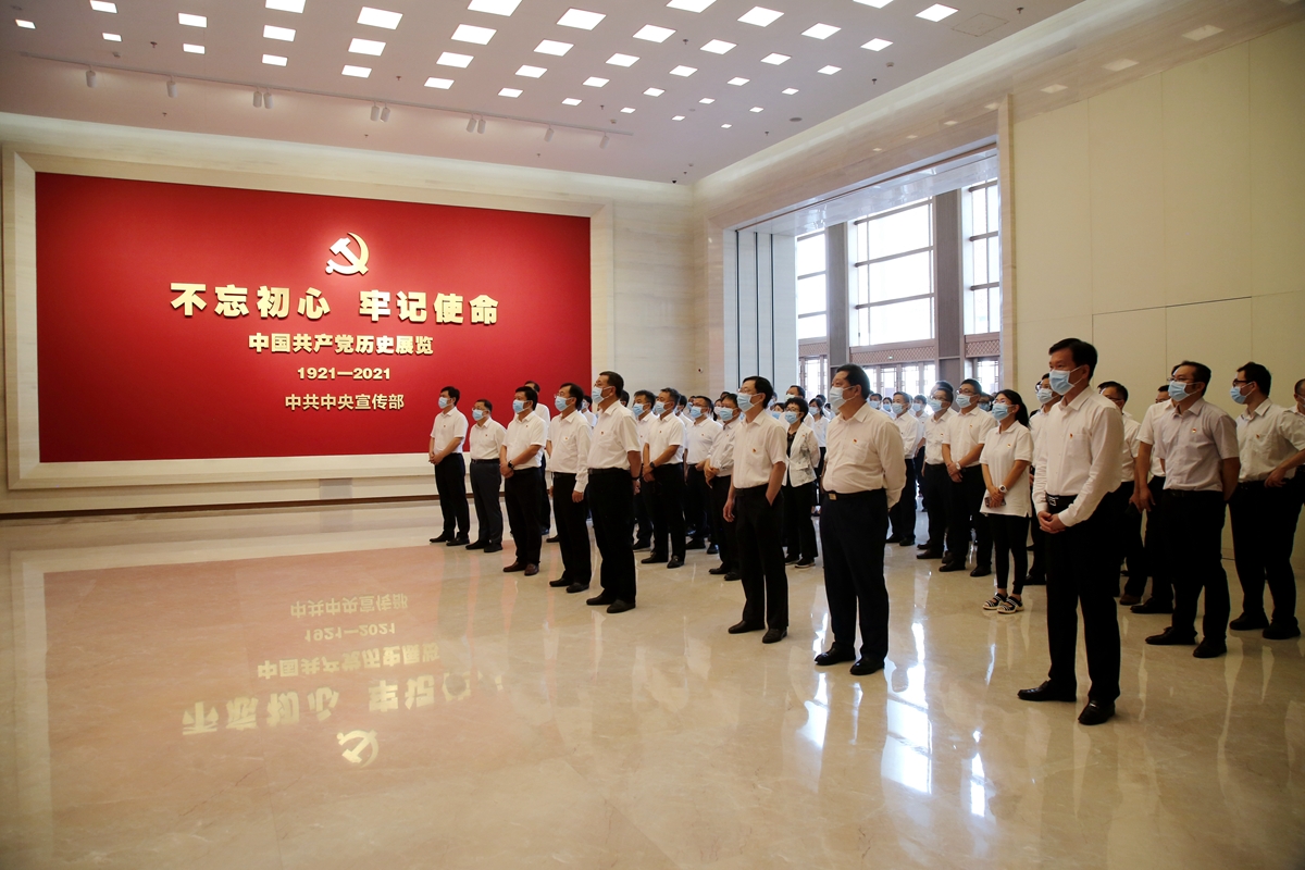 展览馆气势恢宏、庄重肃穆,全方位、全过程、全景式展现了党领导人民在“建立中国共产党 夺取新民主主义革命伟大胜利”“成立中华人民共和国 进行社会主义革命和建设”“实行改革开放开创和发展中国特色社会主义”“推进中国特色社会主义进入新时代 全面建成小康社会 开启全面建设社会主义现代化国家新征程”4个时期创造的伟大成就。通过珍贵的文物实物、翔实的档案资料、生动的图片视频和逼真的复原景观,大家深入学习了党的不懈奋斗史、不怕牺牲史、理论探索史、为民造福史、自身建设史,深刻感悟中国共产党波澜壮阔的百年历程。