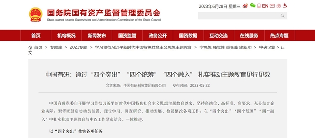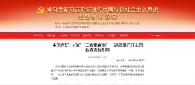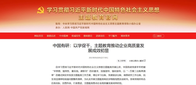 认真总结主题教育好经验好做法以及取得的成果,在中央主题教育官网、《学习时报》、国资委网站、学习强国、《中国有色金属报》、集团官网、官微等媒体刊发文章100余篇,传递有研声音,营造浓厚氛围,引导广大干部职工切实把主题教育成果转化为打造世界一流有色金属科技创新企业的实绩实效,为全面建设社会主义现代化国家、全面推进中华民族伟大复兴贡献有研智慧和有研力量!