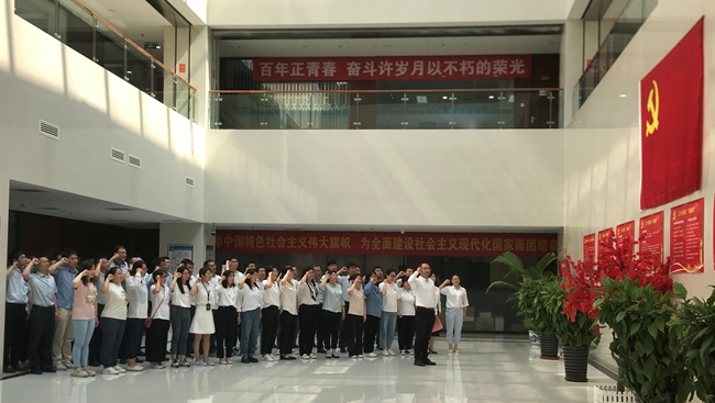 在建党102周年到来之际,国联研究院党委组织开展“迎七一”主题党日活动,通过专题党课、党建群团主题实践活动、重温入党誓词等系列活动,持续深入开展主题教育,热烈庆祝建党102周年,团结激励广大国联员工全力以赴,奋进前行,为全面完成今年各项任务目标而努力奋斗,以扎实成果推进公司高质量发展。国联研究院党委书记、总经理徐冉出席活动并讲话,党委副书记、纪委书记罗茜主持会议,公司党委委员、突击队代表、先锋岗党员、先进班组代表、青年模范岗人员,及全体党员参加活动。