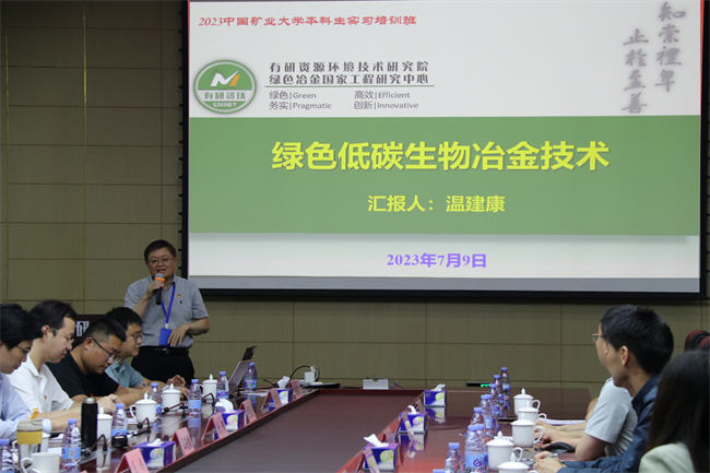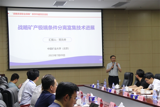 为深入开展学习贯彻习近平新时代中国特色社会主义思想主题教育,强化以学铸魂、以学增智、以学正风、以学促干,7月9日,有研资环院第一党支部与中国矿业大学(北京)矿加系党支部开展“战略资源安全保障”联学共建主题党日活动。有研资环院党总支委员、第一党支部书记、副总经理温建康,第一党支部组织委员兼青年委员、绿色选冶事业部总经理尚鹤,第一党支部宣传委员兼纪检委员、分析测试中心主任屈伟;中国矿业大学(北京)矿加系党支部书记张志军、矿加系主任邓久帅参加活动。有研资环院第一党支部相关党员,高品质有色金属绿色特种冶金国家工程研究中心部分研究生;中国矿业大学(北京)矿加系党支部相关党员教师,2021级本科生,共75人参加活动。