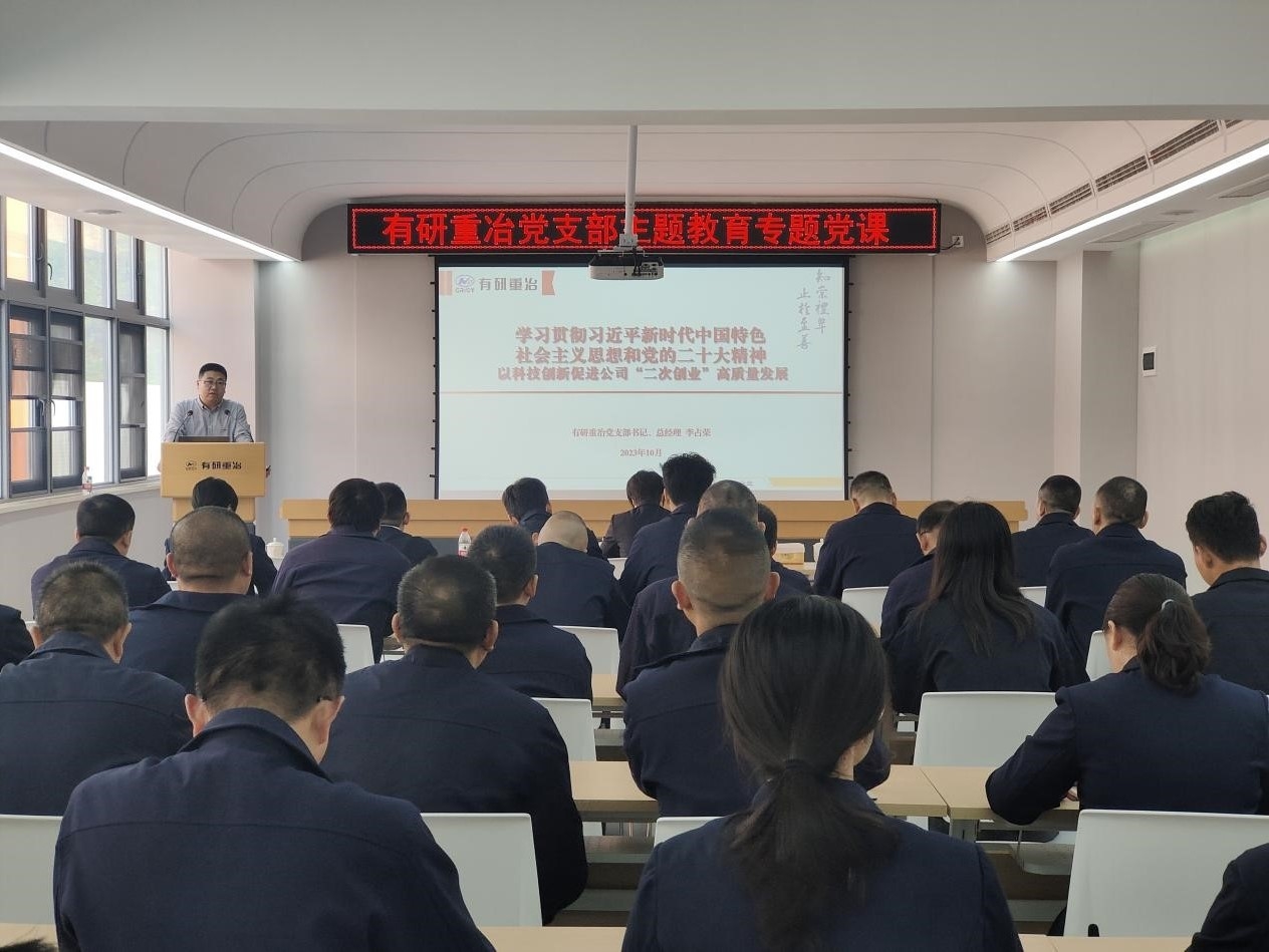 在专题党课上,有研重冶党支部书记、总经理李占荣以“学习贯彻习近平新时代中国特色社会主义思想和党的二十大精神 以科技创新促进公司‘二次创业’高质量发展”为题讲授专题党课,带领全体党员深入学习习近平新时代中国特色社会主义思想和党的二十大精神,并结合“学思想,强党性,重实践,建新功”的总要求,向大家讲授了公司“二次创业”的总体思路、目标和实施路径,号召全体党员干部要以主题教育为契机,坚持学思想、强党性、重实践、建新功,牢牢把握新时代新征程国资央企工作的总目标总原则总要求,坚持“一个目标”,用好“两个途径”,聚焦提升创新能力和价值创造能力,紧紧扭住科技、效率、人才、品牌四个要素,统筹推进“二次创业”的各项工作。
