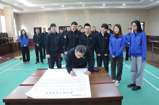 会上全体员工朗读奋斗者宣言,并在承诺书上签字。签约仪式后,公司组织开展2023年度工作总结与“师带徒”特色活动考评,全面回顾了公司成立第一年来取得的成绩。