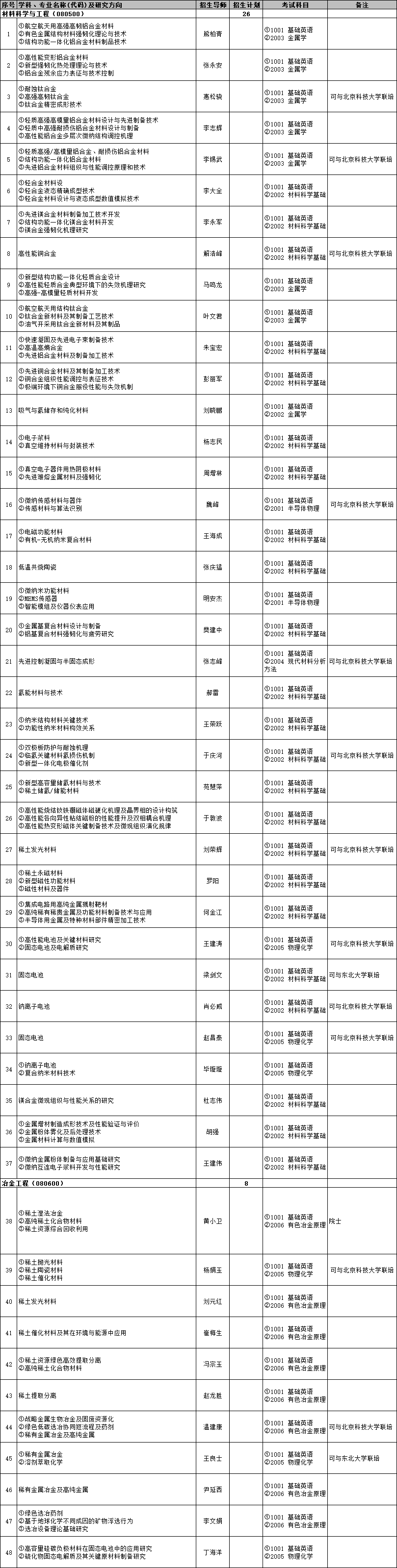 现有两个一级博士、硕士学位授权学科:材料科学与工程、冶金工程,1个专业硕士学位授权点:材料与化工,具有材料科学与工程、冶金工程两个博士后科研流动站,并与多家企业联合建立博士后工作站。