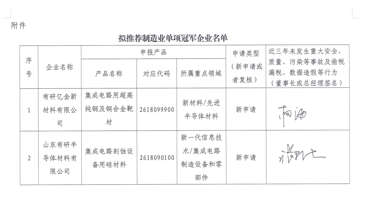 根据《工业和信息化部办公厅关于开展2024年制造业单项冠军企业遴选认定和复核评价工作的通知》(工信厅联政法函〔2024〕328号)和《关于规范拟推荐单项冠军企业公示的函》(工政法函〔2024〕97号)要求,现对申报2024年制造业单项冠军企业的情况公示如下: