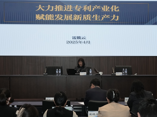 雷筱云做会议主题报告《大力推进专利产业化 赋能发展新质生产力》,从创新驱动发展的形势与要求、措施与进展,部署与展望等方面,深刻解读了国家对专利转化运用的部署要求,并就加速培育和发展新质生产力提出有关思考和建议。薛岳做《聚焦“四不”难题 激发内生动力 打造内驱型科技成果转化生态系统》的报告,围绕科技成果转化实践开展经验分享,详细介绍了有关工作思路和创新举措。与会领导和专家围绕强化知识产权高效益运用和高效率产出等方面开展深入交流研讨。