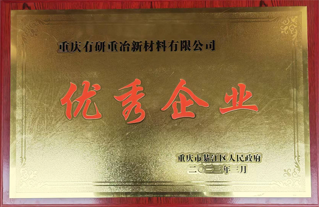 会上,有研重冶获重庆市綦江区人民政府2022年度工业领域“优秀企业”荣誉称号,綦江区委副书记、区长罗成向公司执行董事、总经理李占荣颁授奖牌。