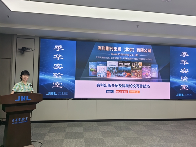 钱九红介绍了有科出版的发展历程、获得的荣誉奖项、期刊布局、集群化建设、数字化建设及公司发展的远景目标。她表示,有科出版积极响应习近平总书记“把论文写在祖国的大地上”号召,立足国家“四个面向”重大需求,办刊范围从有色金属行业外延到战略大材料及人工智能、元宇宙等前沿领域,建立高端学术生态圈,为我国实现科技自立自强、突破“卡脖子”技术提供有力支持。马雯从科技期刊编辑角度,分享了论文处理流程、投稿前准备工作、论文结构分解、论文写作常用工具等内容。