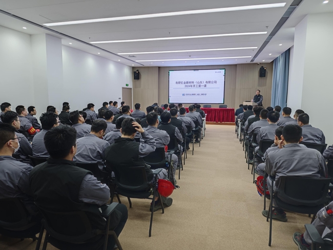 有研国晶辉总经理曹波以“人人讲安全,个个会应急-畅通生命通道”为主题讲授了安全公开课,有研亿金(山东)总经理滕海涛讲授了“开工第一课”。