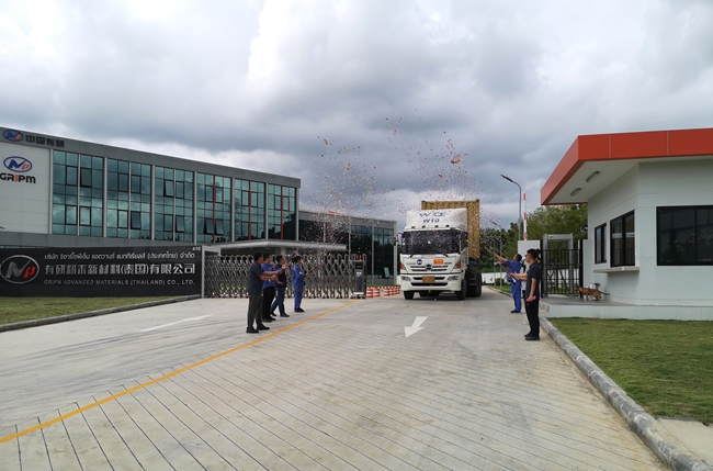 7月10日,有研粉材泰国产业基地项目首批产品电解铜粉装车发货仪式在春武里府WHA伟华工业园公司内举行。这标志公司第一个自主投资海外基地建设项目的成功运行。