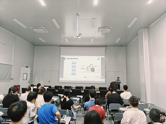 活动伊始,智能传感国家重点实验室副主任、有研广东院副院长魏峰教授带来了主题为《如何准备好研究生学位论文开题和中期》的精彩讲座。魏峰从论文选题的创新性和可行性,到研究方法的合理运用,再到文献综述的全面性和准确性,深入浅出地为同学们讲解了开题和中期的重要性以及准备要点,让同学们对开题和中期有了更清晰的认识和更充分的准备。