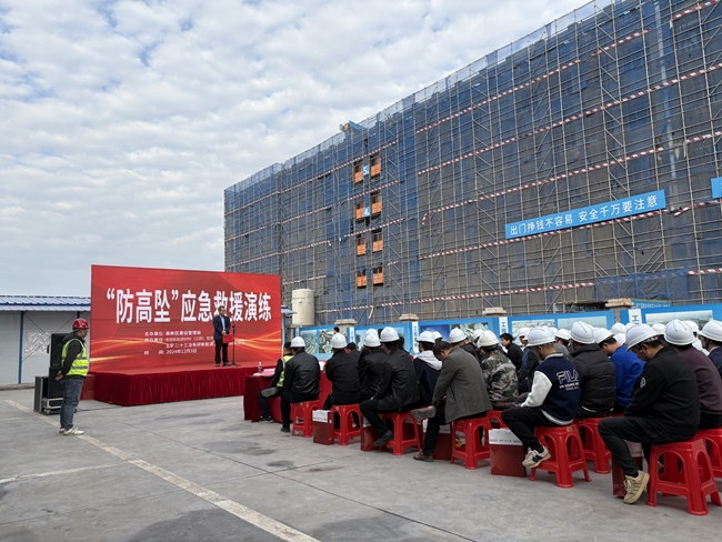 为增强全员安全防范意识和提高应急处置能力,强化应对各类施工灾害事故的自救和抢险技能,提高快速应急救援能力以及协同作战能力。12月3日,新余市高新区建设管理局联合有研新能源、五矿二十三冶三公司在有研新能源项目现场开展“防高坠”应急救援演练。新余市高新区建设管理局局长涂维国、有研新能源总经理张向军、五矿二十三冶三公司常务副总经理陈磊以及各工程项目代表和工程安全监督机构代表共100余人现场观摩了演练活动。
