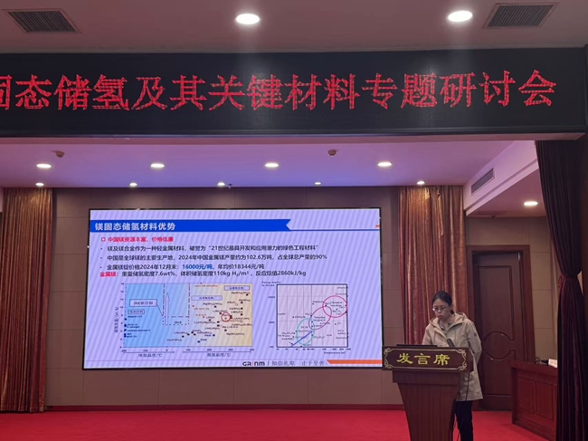 会上,有研工研院正高级工程师苑慧萍作了《镁基固态储氢/储热材料及其关键技术》专题报告,系统展示了公司在镁基固态储氢材料领域的最新研究成果,包括镁基储氢材料与系统、镁基储热材料与系统、高密度镁基氢浆三方面的内容,旨在解决材料性能瓶颈,推动产业化应用。