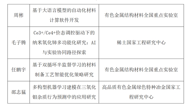 研究生项目分享环节,9名汇报人围绕AI赋能材料性能预测、微观组织分析、逆向设计、工艺优化及智能体开发等方向的应用展开分享。最终评选出一等奖1名、二等奖4名、三等奖4名。