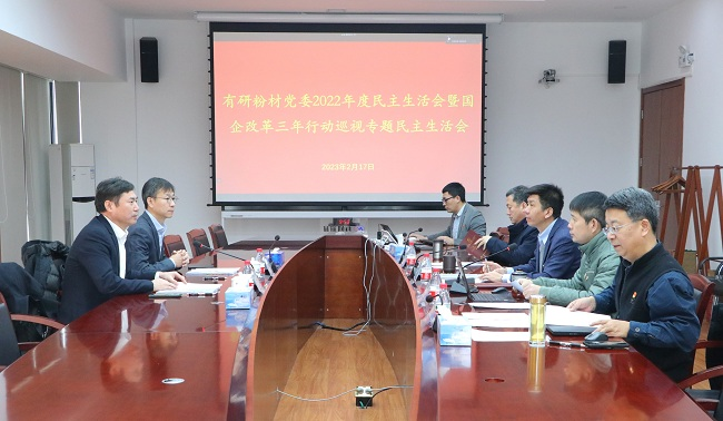 此次民主生活会的主题为“全面贯彻习近平新时代中国特色社会主义思想,深刻领悟‘两个确立’的决定性意义,增强‘四个意识’、坚定‘四个自信’、做到‘两个维护’,团结带领党员干部群众以奋发有为的精神贯彻落实党的二十大作出的重大决策部署”。有研粉材领导班子成员对照党的二十大精神和党章党规党纪,结合国企改革三年行动专项巡视反馈意见,联系个人岗位和工作实际,深入查摆问题,开展批评和自我批评。