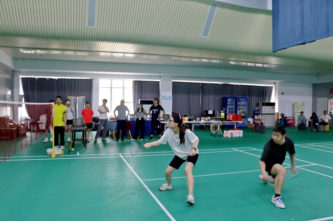 球场上,平日里温文尔雅的同事瞬间化身运动健将,有的稳如定海神针,有的似下山猛虎,高远球、吊球、杀球轮番上演,白色羽球在空中划出一道道令人眼花缭乱的弧线。