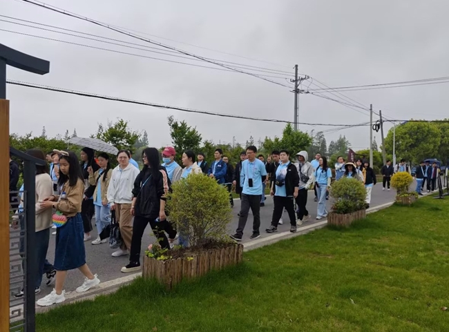 人间春色芬芳日,拾春踏青正当时。4月27日,健步走活动在上海市乡村振兴示范村——青浦区重固镇回龙村如期举行,全体团员青年气势昂扬、整装待发。随着一声“开始”令下,团员青年迈着矫健的步伐沿着指定路线有序行进。