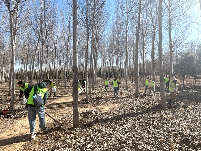 活动伊始,基地工作人员详细讲解了树木种植及养护知识。领取树苗和工具后,众人手持铁锹,热情高涨、干劲十足,分成多个小组投身植树护绿行动。铲土挖坑、踩土固苗、填土围堰、浇水护苗,在大家齐心协力的努力下,35株侧柏扎根于此。原本空旷的土地上,新栽的树苗错落有致,在微风中展现出勃勃生机。大家还完成了基地150余株林木的抚育任务。