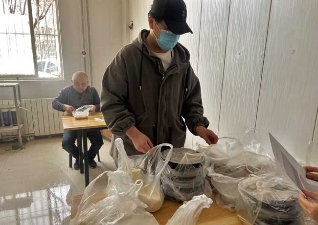 园区封闭管理后,为减少园区堂食交叉感染风险,防疫服务小队成员将食堂盒饭分发给员工,以便于大家在食堂和办公室中单独进餐。每隔三天,防疫服务小队还会从外部统一采购生活日用物资,将其分发给大家,保障员工的起居饮食。
