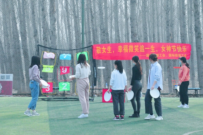 为热烈庆祝国际三八妇女节,丰富员工文化生活,3月7日下午,国合通测工会联合国标检验工会在怀柔组织开展了别开生面的主题飞盘活动。