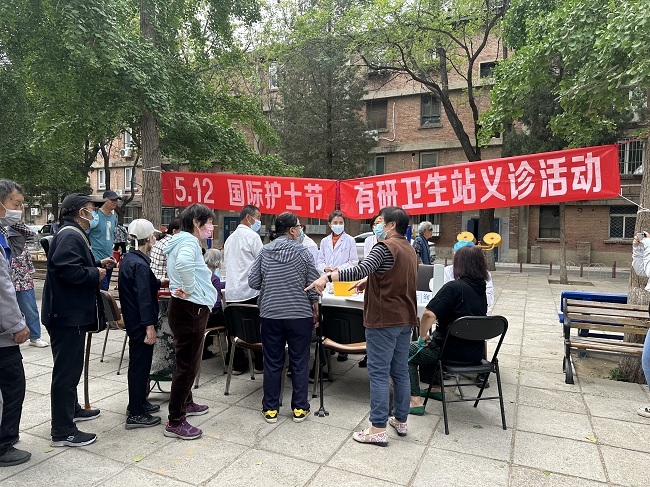 5月12日上午,恰逢有研卫生站的医护人员为了迎接护士节在新外大街3号院社区广场举行义诊活动。沈健一行看望了正在为义诊忙碌着的工作人员,随后看望了卫生站的医护人员,向她们送上鲜花,与她们亲切交谈,感谢她们在平凡的岗位上默默奉献,守护社区居民和集团职工的生命安全和身体健康。他寄语有研卫生站医护人员继续弘扬“人民至上、生命至上”理念,继续发扬职业精神和优良传统,继续坚守初心、践行使命,提高本领,更好地满足人民群众卫生健康需求。