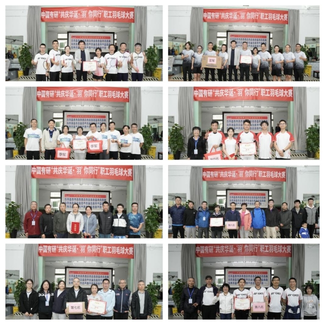 经过激烈的角逐,资环-粉材一队获得冠军,工研院一队获得亚军,复材-有科联队获得季军,第四名至第八名分别由国合-兴友联队、职能-有研硅一队、新材三队、工研院二队、资环-粉材二队获得。集团副总经理黄倬和裁判员们为获奖代表队颁发了奖品和证书,并与大家合影留念。