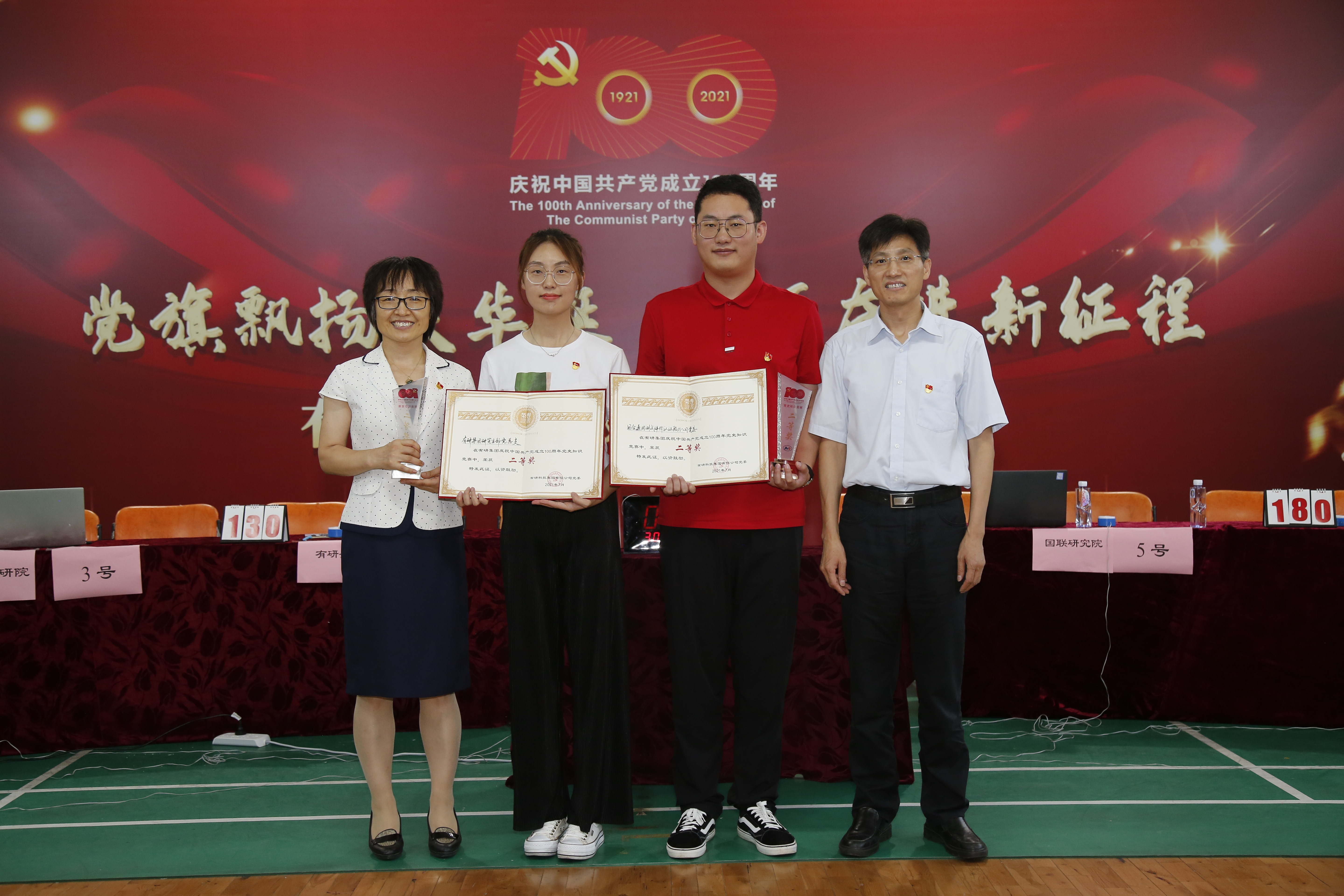 为深入学习贯彻习近平总书记“七一”重要讲话精神,扎实开展党史学习教育,进一步引导广大党员干部群众坚定理想信念,永葆奋斗热情,有研集团举办“党旗飘扬庆华诞,砥砺奋进新征程”党史知识竞赛。7月23日,决赛如期而至。有研集团副总经理、党史学习教育领导小组副组长黄倬,总经理助理刘创社出席决赛。职能部门相关负责人,各二级党组织书记、副书记,受邀担任评委嘉宾,150余名员工代表到场助威。